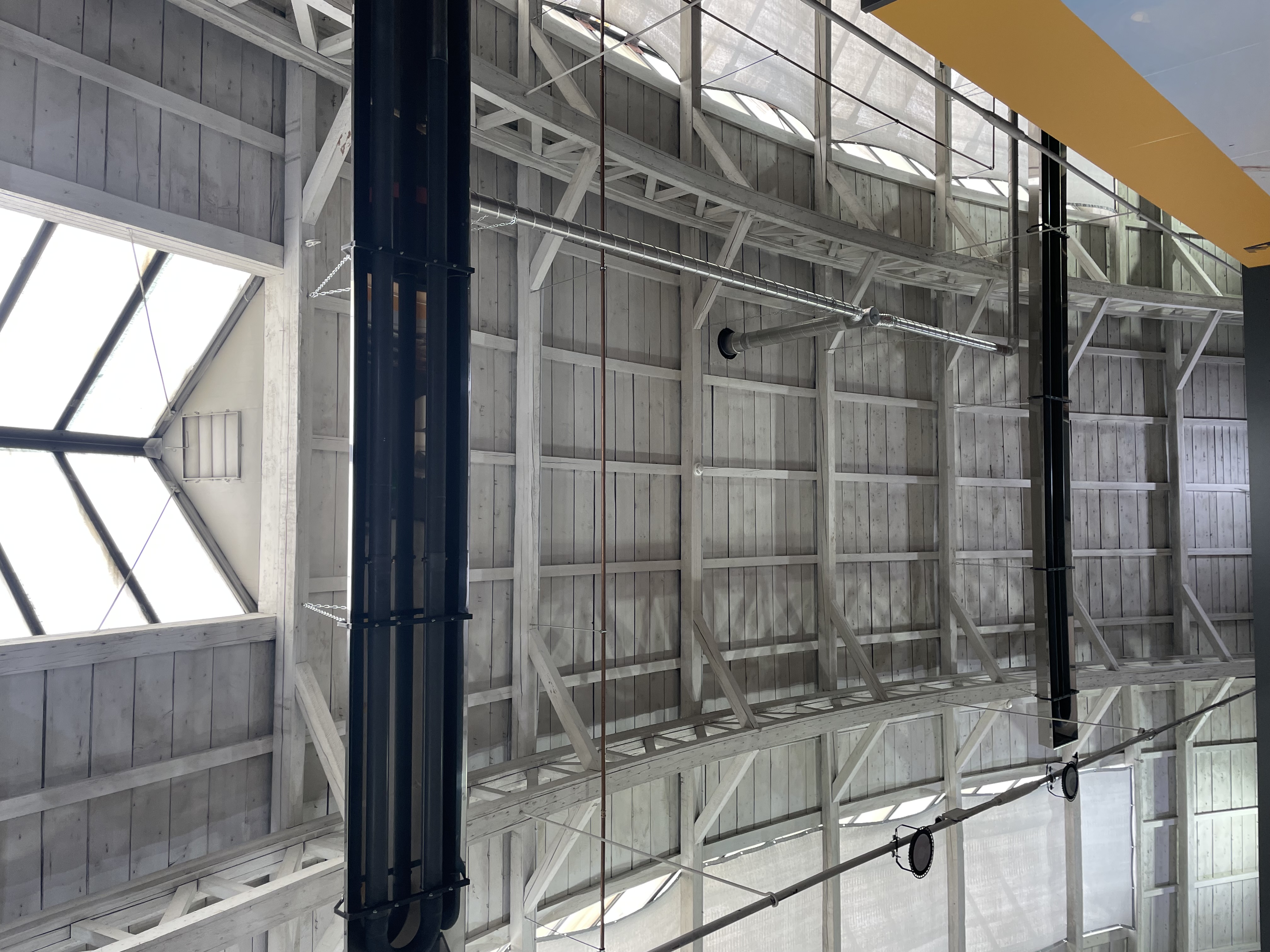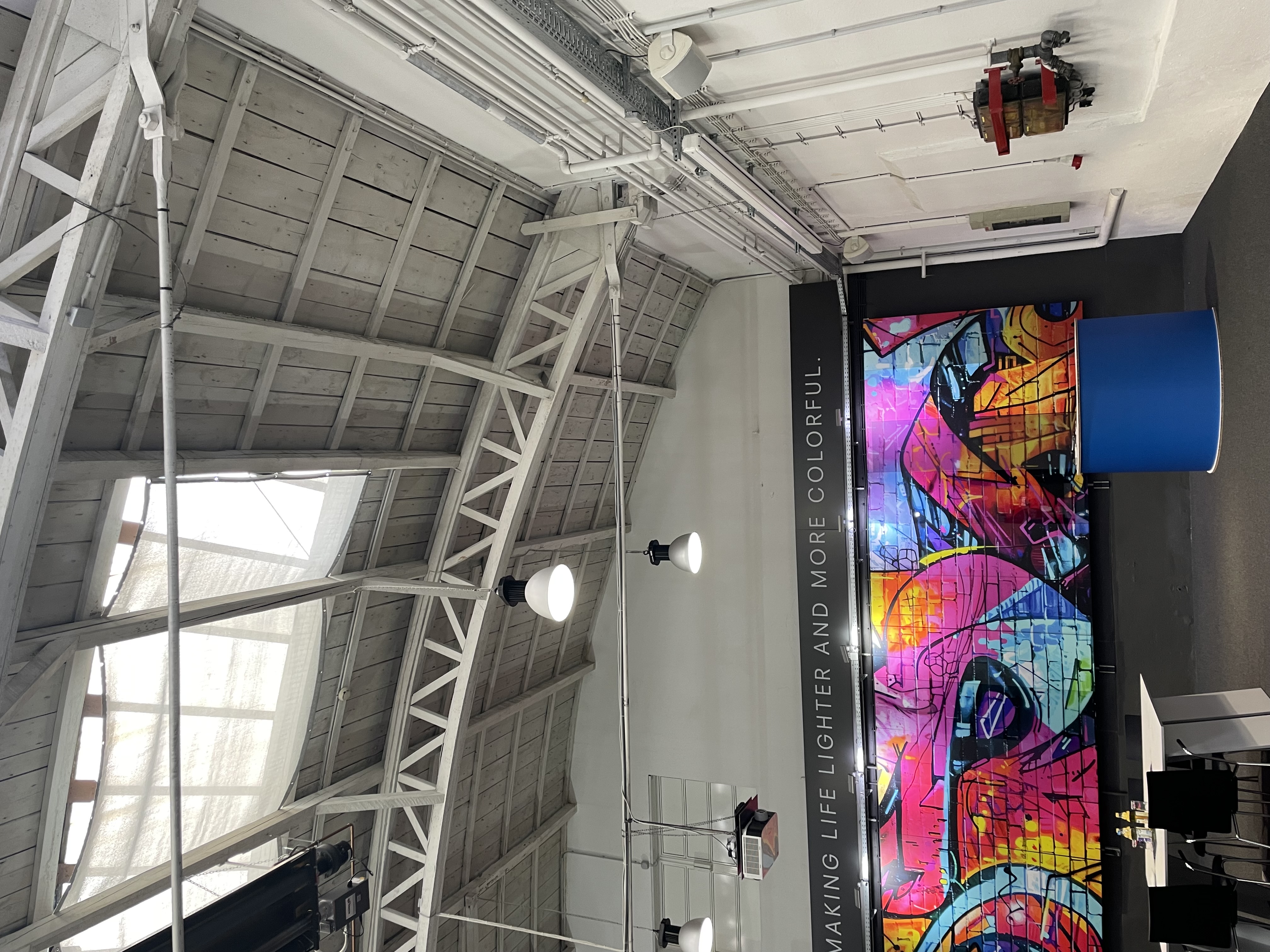 100 jährige Lagerhalle in Singen Neuausrichtung der Architektur einer 100-jährigen Lagerhalle in Singen zu Produktentwicklung und Schulung. Dazu wurde das Hallentragwerk/Holzfachwerk freigelegt, erhalten und mit einem neuen Anstrich versehen. Die Wände wurden nicht überarbeitet sondern ebenfalls „nur“ gestrichen der 100-jährige beschichtete Betonestrich wurde nur gereinigt, somit sind die Gebrauchsspuren erhalten geblieben.