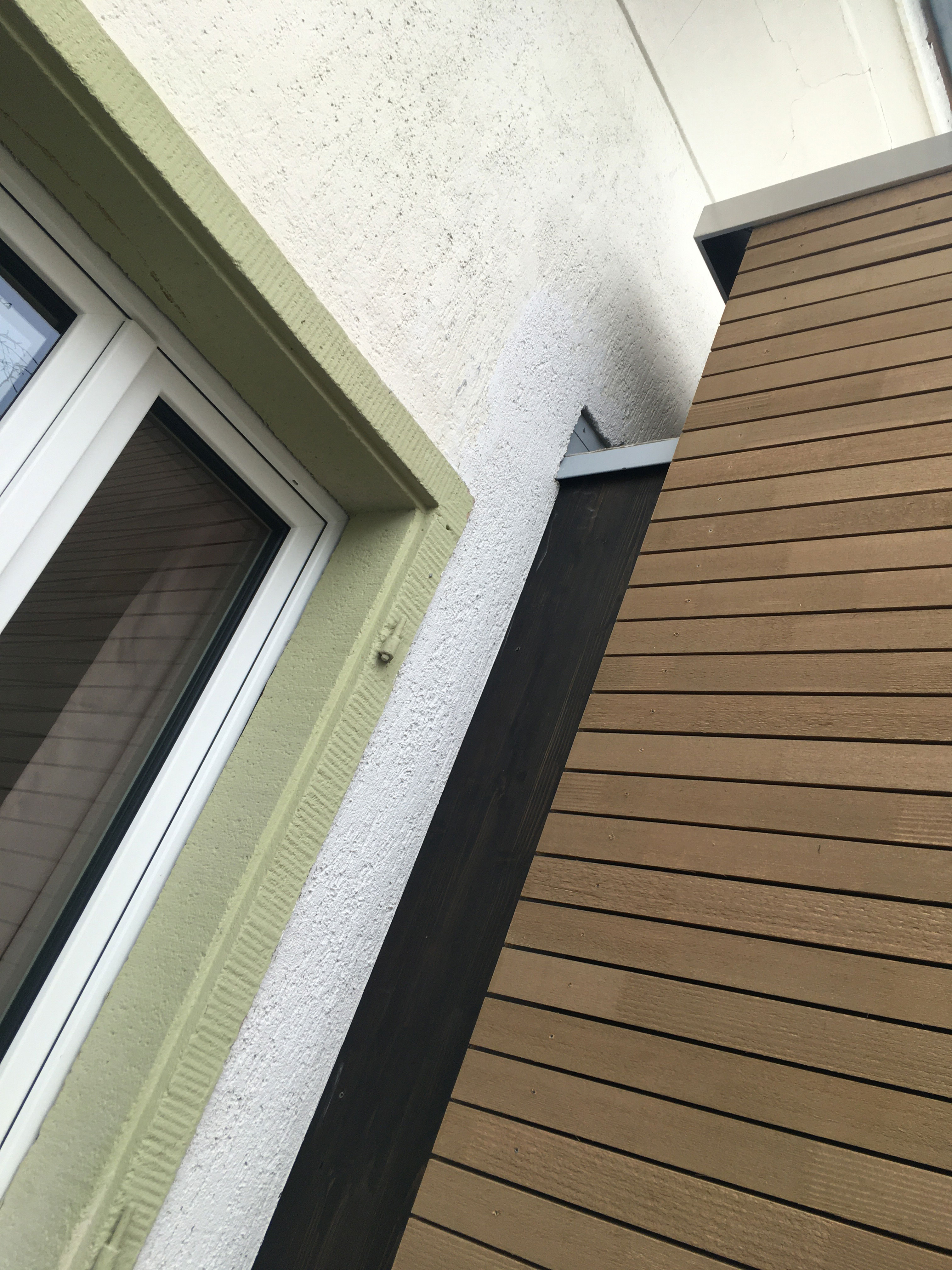 Erweiterung eines bestehenden Wohnhauses durch ein Garten- / Wohnzimmer. Holzkonstruktion, Fassade mit Rhombusleisten. Zurückhaltende Holzarchitektur mit direktem Gartenbezug.